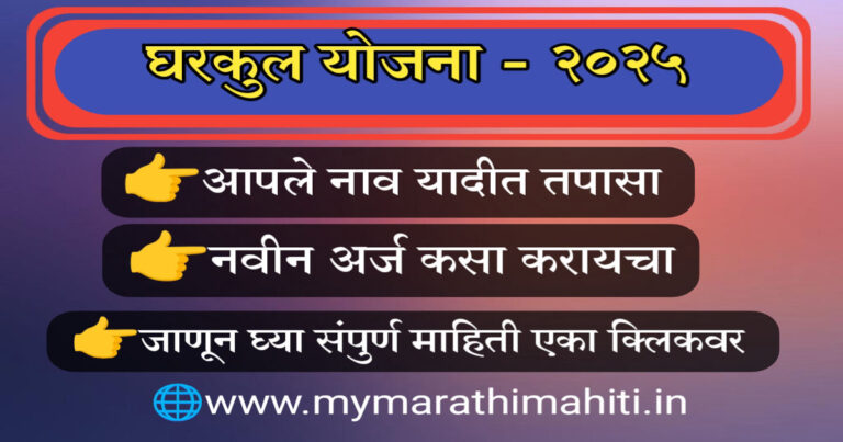 घरकुल योजना 2025 ही सरकारची महत्त्वाकांक्षी योजना आहे जी ग्रामीण व शहरी गरजू नागरिकांना त्यांच्या स्वतःच्या घराचे स्वप्न पूर्ण करण्यासाठी...